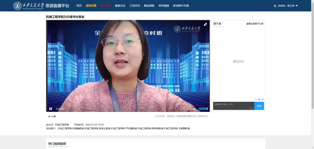 为了丰富pg电子中国官方网站师生的疫情期间生活,提高思想水平和科研动力,坚定抗击疫情的信心,1月7日晚,pg电子中国官方网站以线上直播的方式在pg电子中国官方网站思源直播平台开展了pg电子中国官方网站力行读书分享会。本次分享会邀请了pg电子中国官方网站党委书记王朝晖教授、院长陈雪峰教授、副院长杨树明教授、国际机械中心主任严如强教授和机械制造系统工程国家重点实验室主任李涤尘教授开展读书分享活动,pg电子中国官方网站党委副书记张敏主持本次分享会,学院书院共3600余人次在线上观看直播学习。