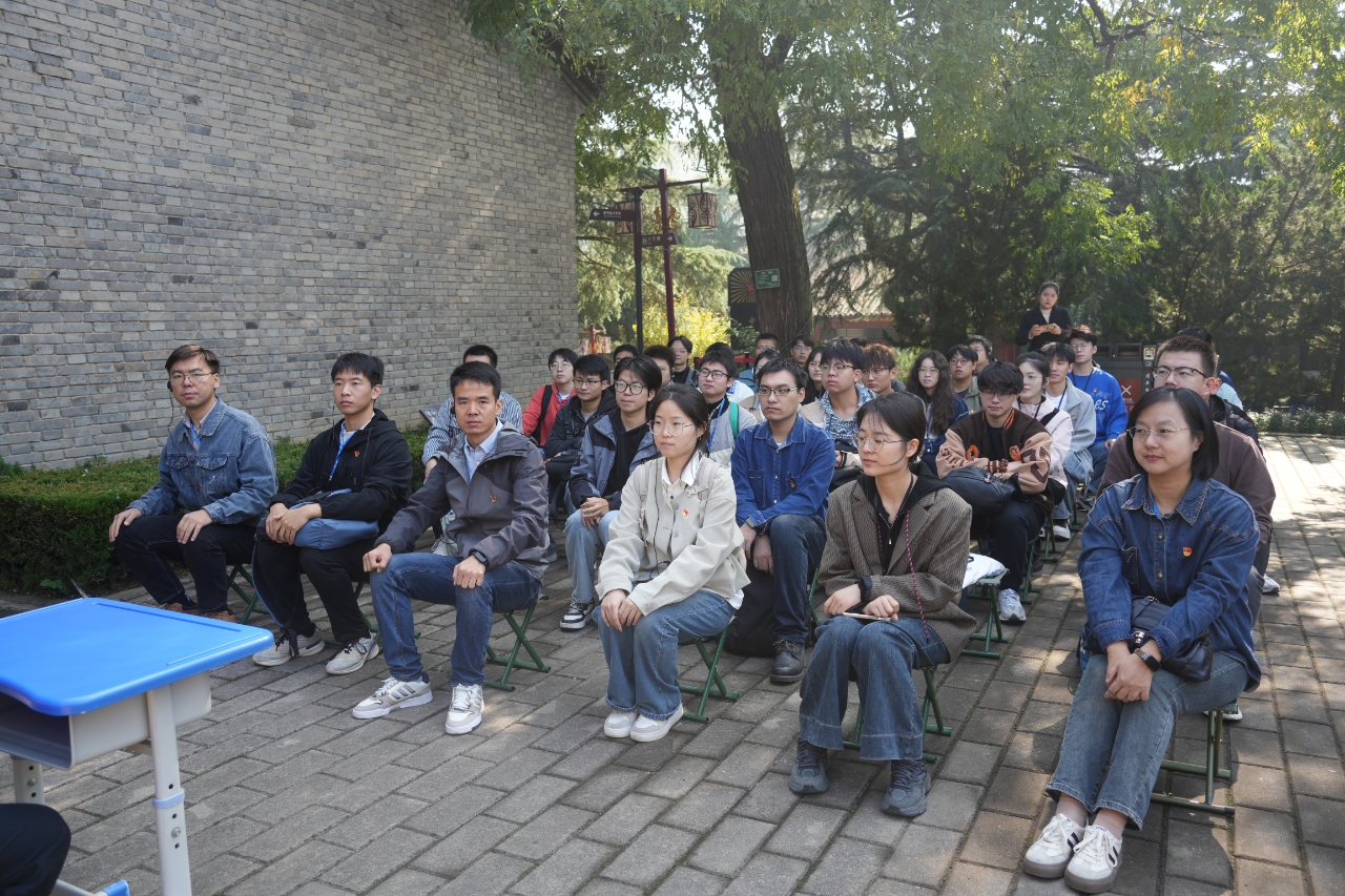 随后,在古槐遗址,渭华起义纪念馆原馆长史小宏老师为大家带来了一节“大槐树下的党课”。他从“渭华起义爆发的历史背景”“省委为什么选择在渭华地区举行起义”“渭华起义革命精神的时代价值”三个方面切入,为同志们生动地讲述了渭华起义的起始历程与革命精神,并鼓励青年一代坚定四个自信,做到两个维护,树立正确的人生观和价值观,赓续红色基因,做一个对党忠诚、笃行不怠的新时代奋斗者。